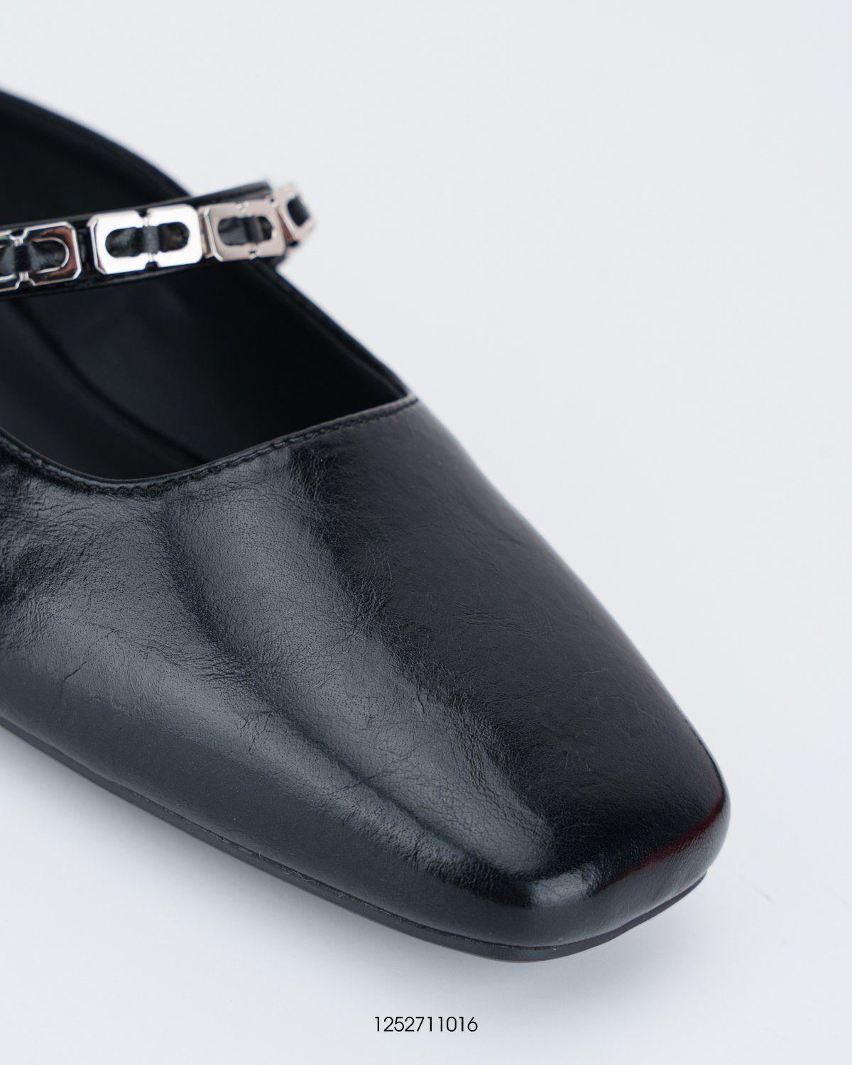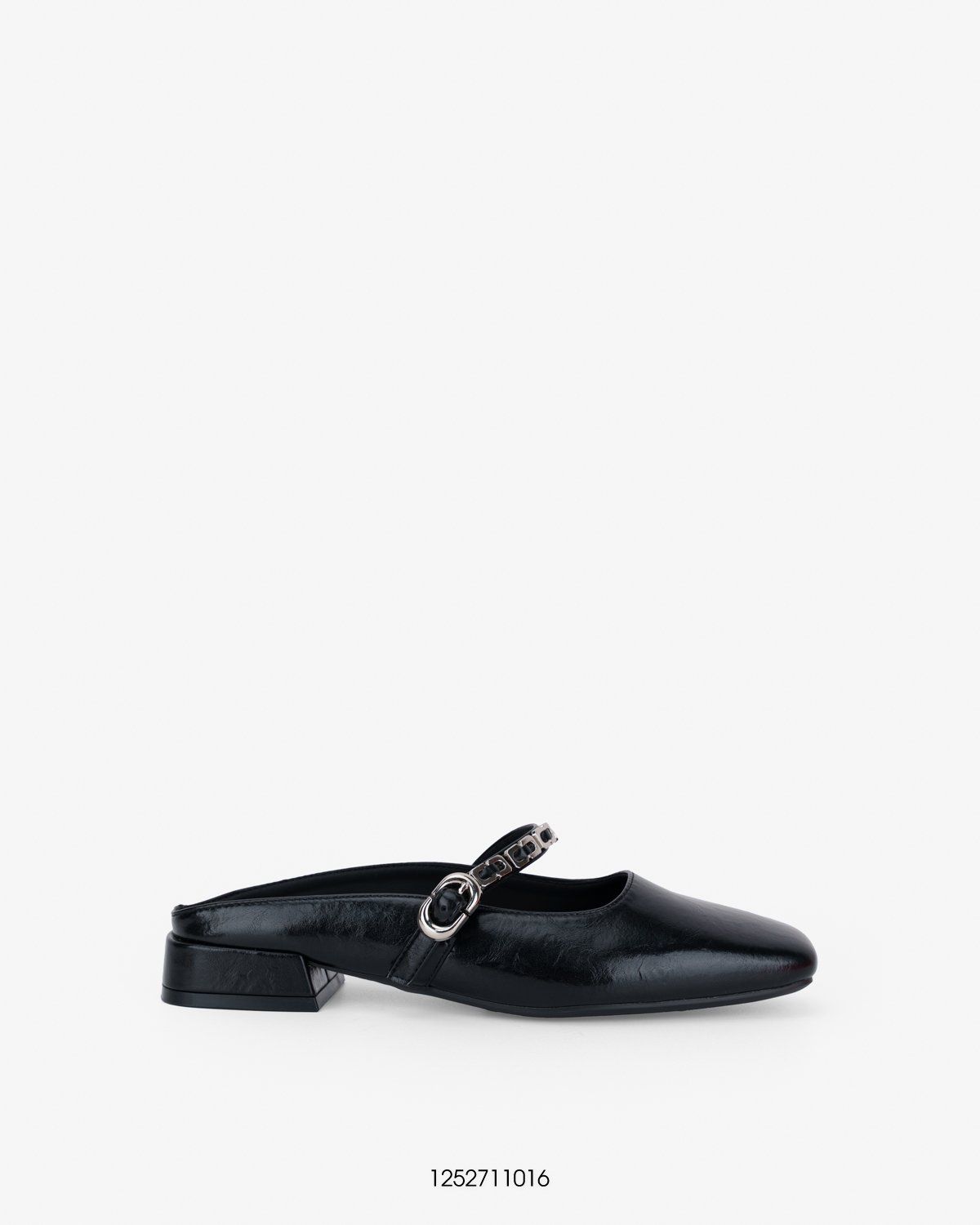 Sở hữu phong cách tối giản nhưng đầy cuốn hút, đôi giày mule màu đen được nhấn nhá bởi quai ngang kim loại ánh bạc sang trọng, mang đến vẻ ngoài hiện đại và tinh tế. Thiết kế mũi vuông thời thượng kết hợp cùng gót thấp vuông chắc chắn giúp tôn dáng đôi chân và mang lại sự thoải mái tối đa khi di chuyển.